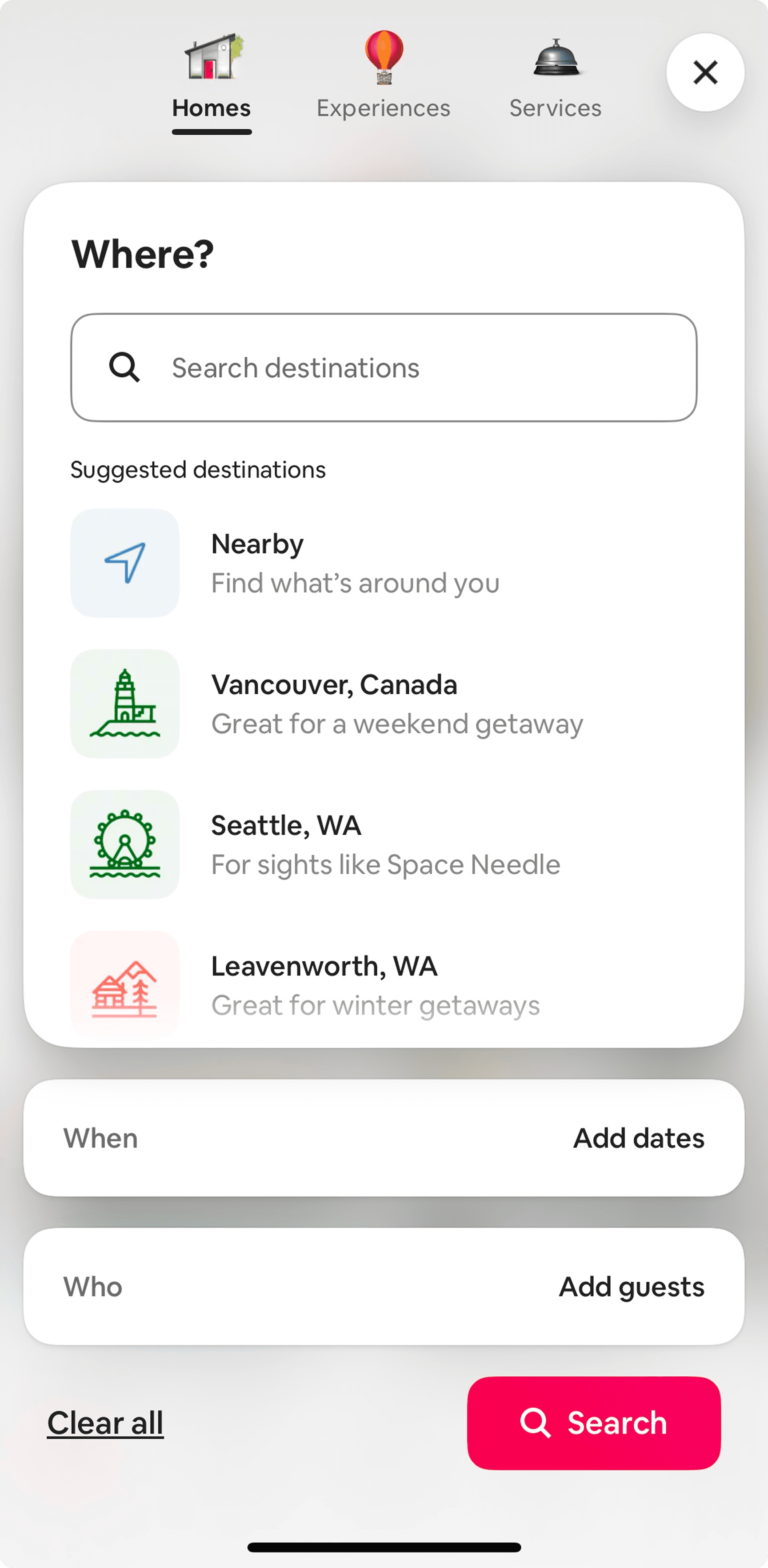 Progressive disclosure reveals information without overwhelming the user. Location filters increase relevancy of search results.