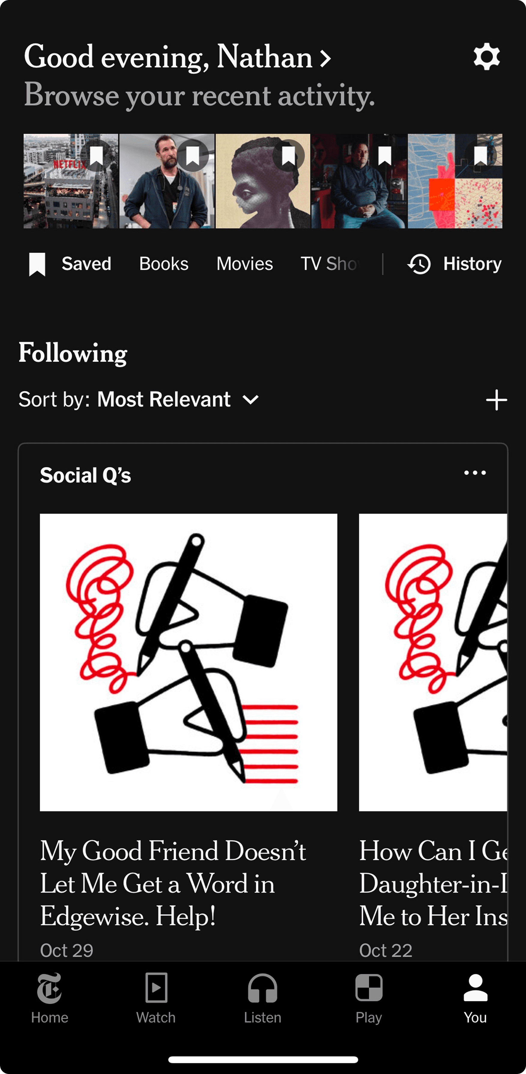 Saved articles are spotlighted at the top, encouraging readers to revisit.