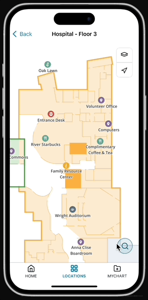 Saved resources are populated within map search, offering users a quicker path to getting to the right place.